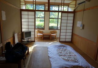 | 18:00 夕食 東京の大学4回生の兄ちゃんと、イギリス人のグループ客とその引率の日本人2人と一緒になる。 1泊2日2食つきで8,000円。 お弁当は500円。 |