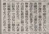 割烹料理屋のお父さんが、引退される話しをされている。父の板場の姿を、父の心と生き方に重ねる文章に、素直に感動した。その文章に、すんなり入れてる痛烈な本音。ちくりと刺す批判が絶妙さに、驚愕。(pdf)