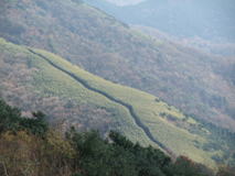 | 真っ二つに、バカーッと大岩が割れていた。 いや、ほんまに金太郎が割ったんとちゃうか、と思うぐらいの割れっぷり。 この大岩が転がってこないように支えてる木の棒。 わはは、支えきれるかっ! |