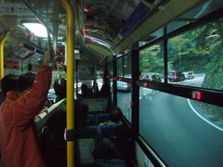 15:09 星の王子さまミュージアム バス停 16:15 湯本バス停 この時期、この時間帯はどんどん渋滞していく道で、バスの運転手さんが事細かに教えてくれた。 「駅前の交差点から大平台まで渋滞している、と無線が入りました」 「今、抜かれた車も、1台ぶんの渋滞となっていきます」 「1時間半、2時間かかるときもあります」 ようしゃべる運転手さんやったわ。 |