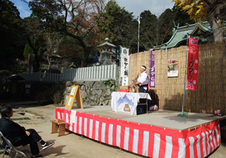 | 11:00 筑波山神社 ガマの油の口上をやってた。生で見るのは初めてかも。 (ちょっとだけ動画) 11:15、筑波山神社入口から、ちょうどいいタイミングで、つくば駅行きの直行バスに乗れた。 どうも、周りの話しを聞いてると、昨日『今すぐ行ける紅葉ベストスポット!』みたいなテレビをやってたようや。 だからか。駐車場の案内人やお土産屋さんの人らが「異常に多い」と言うてた。 山のなかもそうやったけど、下山してびびったのは、道路があちこちにある駐車場の入り口から「満車」と掲げられたプレートを先頭に、ずらっ〜と道路まで渋滞してた。 筑波山は大、大、大渋滞や! 筑波山そのもののキャパがオーバーしてるように思える。駐車場も、道路も、ハイキングコースもそんなに大きくはない。 メディアの力か、お気軽に来れる人気なのか、これは異常やで。 ぼくが乗った駅に向かうバスは、渋滞に巻き込まれてる上りのバスとすれ違うたびに、運ちゃん席の小窓を開けて、業務連絡を伝えた。 「そこからだと登山口まで40分、つつじヶ丘まで2時間」 それを聞いた向こうのバスの乗客が、うえ〜と顔をしてた。運転手さんは諦め顔。 こっちのバスでは、「かわいそ〜」という声が漏れた。 そのあと、すれ違うたびに、小窓をあけて「そこからは3時間」、「たぶん4時間ぐらい」と業務連絡を伝え、最後には「今日は着かないかも」と。 あれを聞かされたら、向こうのバスの乗客たちはどうするんやろう?トイレに行きたい、という人も出てくるだろうし、直行臨時バスに乗って「日中に着かないかも」と言われたら、どうすんねんやろ?今、まだ11:30やで。なのに、今日中に着かへんの? ほな戻りましょう、と誰かが言い出すんか、そのときの運賃はどうなるんか。いろいろ疑問が沸いたが、他人事でよかった。 |