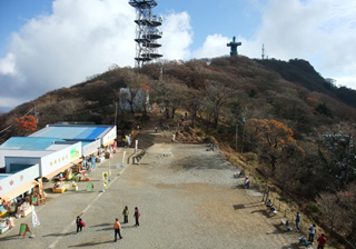 と、しつこくアナウンスが流れてる。 うるさい!何度も言うな。もう、わかっとるがな。 ほんまに10分おきに、どばーっと人が吐き出されてくる。時間が経てば経つほど、どんどん、どんどん、この広場が人で埋まってきた。 ここで、前夜に握ったおにぎりを2個食べた。そうこうするうちに女体山の右から、ケーブルカー駅の左から、人で渋滞するほどになってきた。 ぜんぜん落ち着かん。閉口するわ。 そそくさと片付けて、足早に女体山へ向かった。 |