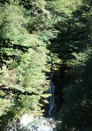 | 14:30 出たー!すんごい轟音!轟音が渓谷に響き渡ってる。七ツ釜五段の滝。ずど−んと1本の滝でなく、五段が連なってる。 (ちょっとだけ動画、YouTUBE) |