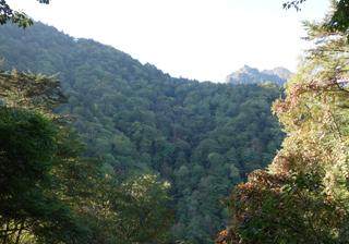 | 15:50 大展望台 広い景色でめっちゃ落ち着く〜。あの出っ張ってるところの鶏冠山に登りたい! (鶏冠山は、岩登りの技術とハーネスなどの道具が必要な山だそうで、教わってでもいっぺん登りたい!) |