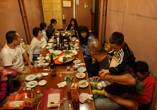 | 練習を終えて今夜泊まるロッジへ移動。 兵庫県立『長寿の郷』。 ロッジは大きくて、みんなと一緒に泊まれて、一緒にご飯を食べる。大きな家族になったようで楽しい! 夕食は、前夜祭ということで中華料理の『香蘭』へ。 宴会は、なんと外のコンテナハウス。 |