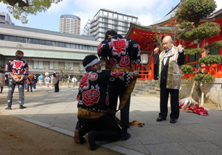 | 梶原武者を見守る徳さん。 天地祓い。 |