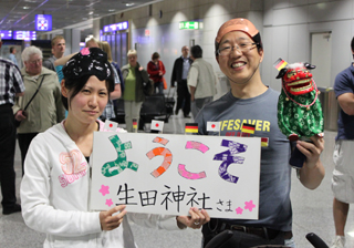 変わらないキースとハグ。 変わらないちさとちゃんとハグ。 そして1歳2ヶ月のさくらちゃんとご挨拶。めっちゃかわいい〜! とうとうこの2人&赤ちゃんとドイツで会えました。 「ドイツで獅子舞ができたらいいね!」 なんて言ってて、その1年後に実現したわけで、誰もこうなるなんて思ってもいませんでした。 下の3枚の写真。ほそちぃが前泊してたときの様子です。 新婚さんたちの『お侍さんと町娘プレイ』が、延々と続いてたそうです。 |