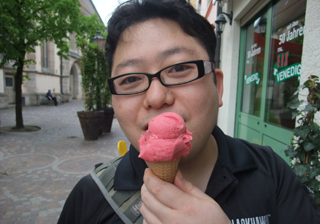 | 「美味しい〜の顔をして」と、リクエストしました。 さすが、ほそちぃ! 巫女さんは、まだ照れがあります。 アイスクリームは高野師匠のおごりです。 食べ終わる頃に、高野師匠が一言。 「いつの間にか、巫女さん、おるやないか!」 って、遅っーーーー!!! ホテルからずっと一緒やがな! |