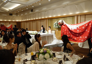 | お色直しから戻ってきたお二人。 やっぱり和装はええね〜。 洋装と和装の両方を着られる日本の結婚披露宴は、ひょっとしてめっちゃええかも。 リッキー&新婦さま、、ほんとうに結婚おめでとう! 笑顔があふれる楽しい披露宴でした! |