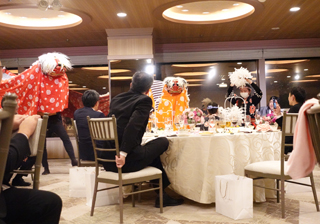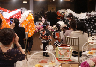 和やかな雰囲気のなか、獅子舞が登場! 3頭が会場全体へ拡がって舞うといっそう華やかになりました。 |