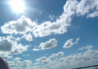 | モーテル前の道路で、キース&ケンちゃんとサッカーをしました。雲一点ない、青い大空です! こんなに広い空を見たのは初めてです。 |